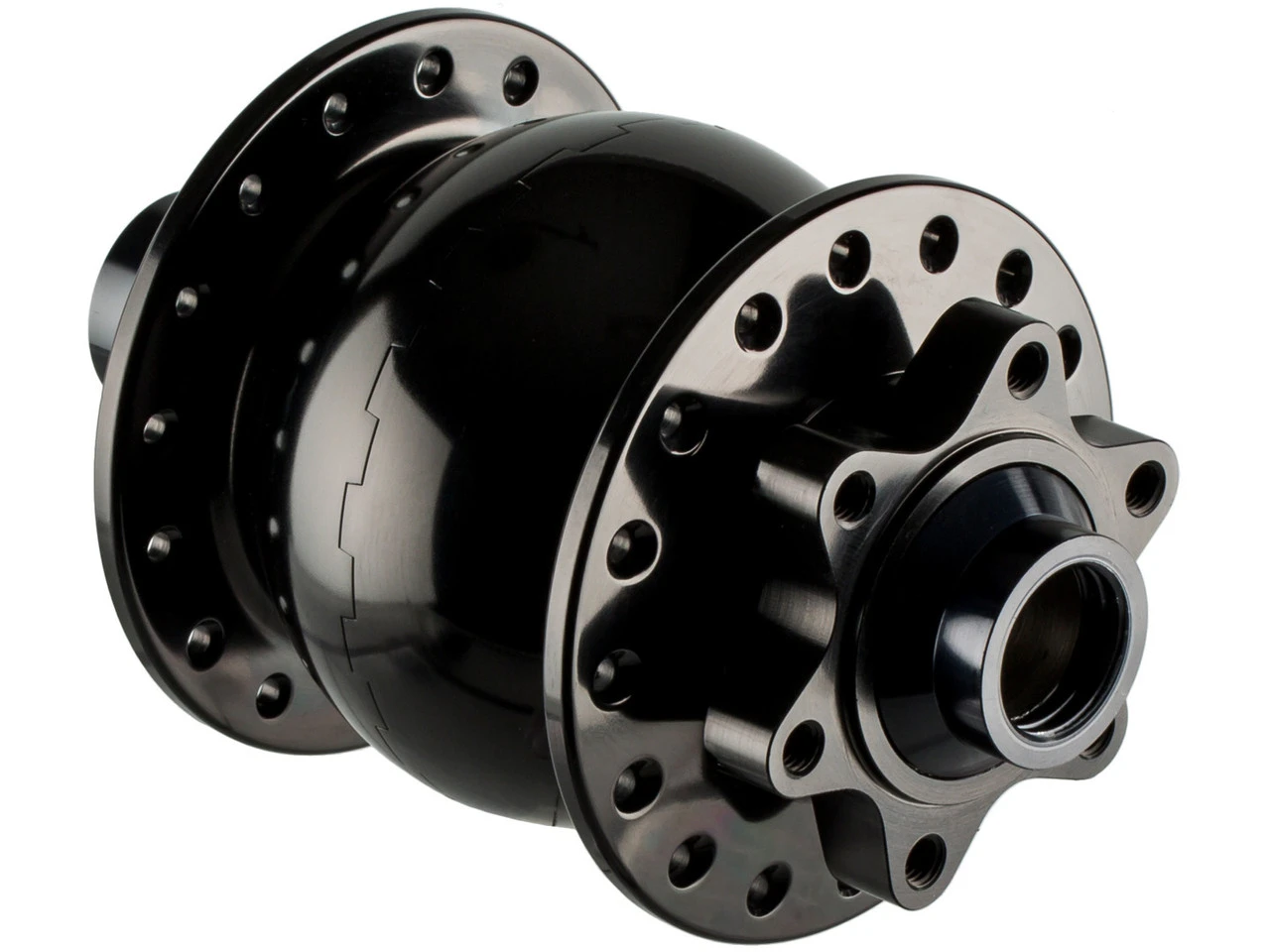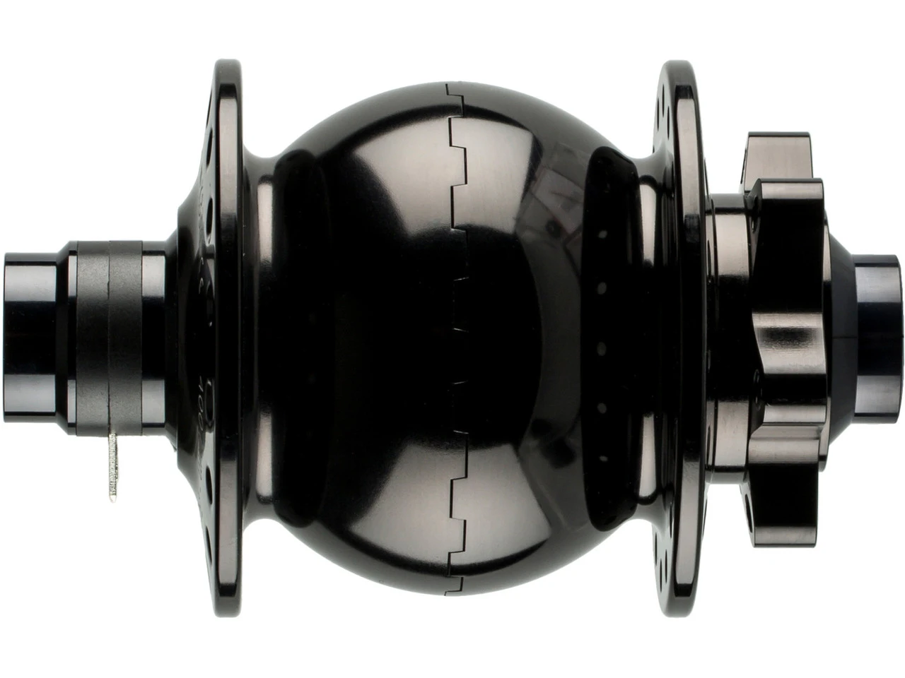 Dieser SON 28 Steckachs-Nabendynamo im Boost-Standard für 110 mm Klemmbreite hat zwei gleich große, symmetrische Flansche. Das macht den Laufradbau einfacher und das Laufrad steifer und stabiler.