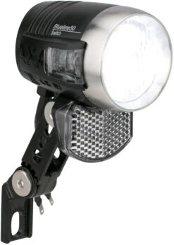 Technische Daten:Ausführung:Frontlicht (weiß)Leuchtmittel:Hochleistungs-LEDBetriebsmittel:Naben- und SeitenläuferdynamoZulassung im Straßenverkehr:Ja, für Fahrräder nach §67 StVZOBeleuchtungsstärke:50 LuxLebensdauer:50.000 StundenLichtkegel:75 m (sehen), 4500 m (gesehen werden)Ein-/Ausschaltautomatik:NeinStandlicht:NeinMontage:2 achsiger StahlhalterTechnologien:Clear Lens Technology, SwitchFeatures:klare Linsentechnik sorgt für Sichtbarkeit von der Seiteentspricht deutschen (StVZO) und französischen Bestimmungenoptimales Lichtbild dank spezieller Linsentechnikkompaktes und sportliches Designfür die Nutzung in Kombination mit Naben- und Seitenläuferdynamo2 achsiger Stahlhalter50 Lux Hochleistungslicht mit mehr als 50.000 Stunden Lebensdauerbesser gesehen werden durch integrierten RetroreflektorTechnologien:Clear Lens Technology