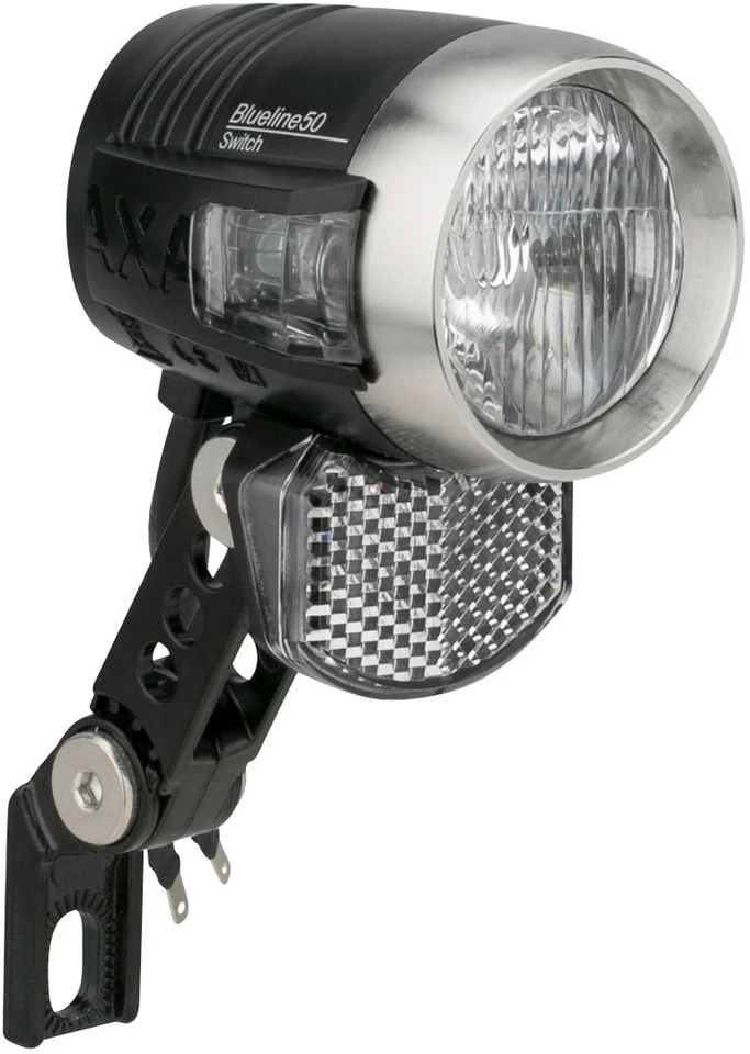 Der AXA Blueline 50 ist ein kompakter und sportlicher dynamobetriebener Scheinwerfer mit einer Lichtstärke von 50 Lux. Das Frontlicht bietet eine Kombination aus integriertem Reflektor und optimaler Lichtverteilung. Beide Merkmale erhöhen den Sicherheitsaspekt, so dass Du besser von anderen Verkehrsteilnehmern gesehen wirst und die Straße vor Dir gut beleuchtet ist.