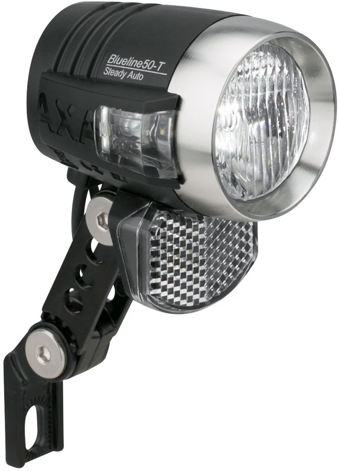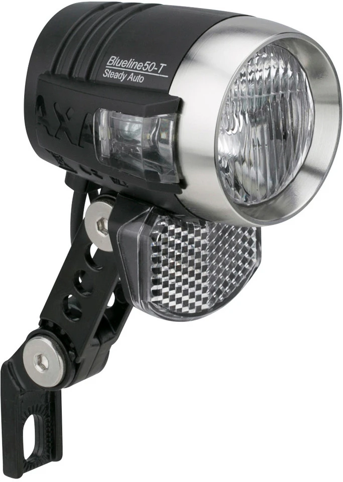 Der AXA Blueline 50 ist ein kompakter und sportlicher dynamobetriebener Scheinwerfer mit einer Lichtstärke von 50 Lux. Das Frontlicht bietet eine Kombination aus integriertem Reflektor und optimaler Lichtverteilung. Beide Merkmale erhöhen den Sicherheitsaspekt, so dass Du besser von anderen Verkehrsteilnehmern gesehen wirst und die Straße vor Dir gut beleuchtet ist. Das Blue Line 50 ist mit Tagfahrlicht ausgestattet. Darüber hinaus besitzt dieser Scheinwerfer einen automatischen Hell / Dunkel-Sensor und Standlicht-Funktion. Diese Funktion ermöglicht Dir, das Licht im Stand noch bis zu 4 Minuten nutzen zu können.