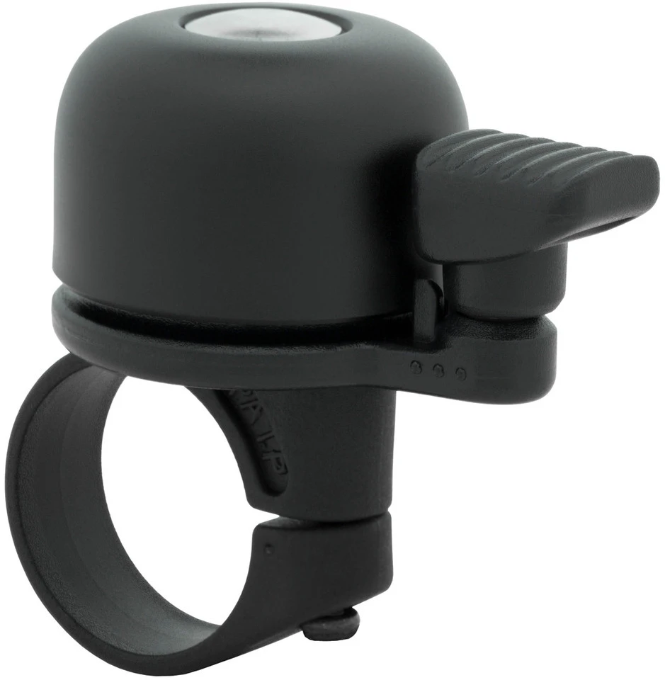 Klingel mit Oversize-Klemmung für Dein Bike. Mit verstellbarer Lenkerposition und um 360° drehbarem Glockenklöppel.