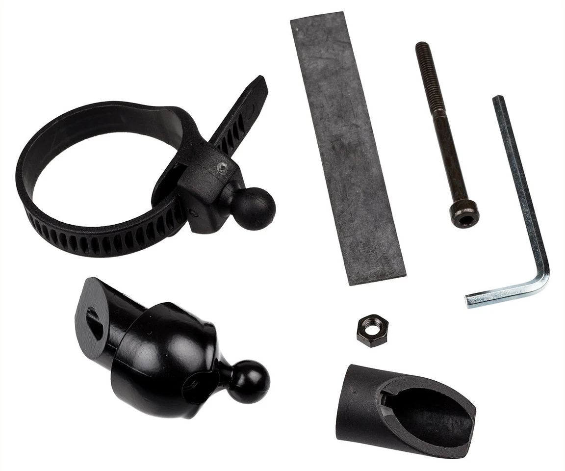 Ersatzbefestigung für den Cycle Star Rückspiegel von busch+müller. Universelles Befestigungssystem zur Schellenbefestigung am Lenker, oder zur Innenlenkerbefestigung von 17,2 – 22 mm.