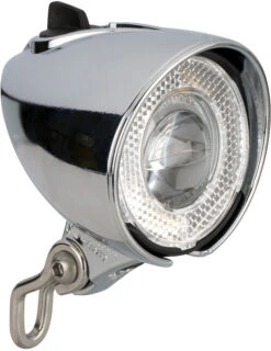 Spezifikationen:AusfĂŒhrung:Frontlicht (weiĂ)Montage:Edelstahl LampenhalterLeuchtmittel:1 x LEDLeuchtkraft:25 LuxBetriebsmittel:Nabendynamo, SeitenlĂ€uferdynamoTechnische Daten:Material:KunststoffStandlicht:Ja (nicht abschaltbar)Schalter:Ein / AusFreigaben:Zulassung im StraĂenverkehr:Ja, fĂŒr FahrrĂ€der (nach §67 StVZO)PrĂŒfziffer:K ~~ 866Features:mit einer Hochleistungs-LEDmit Nahfeldausleuchtungintegrierter FrontrĂŒckstrahlermoderne LED-Linsentechnikerzeugt ein groĂes und homogenes LichtfeldprĂ€zise Hell-Dunkel-Grenzepraktische Standlichtfunktion dank Kondensatortechnikgeeignet fĂŒr Naben-Dynamozugelassen im Bereich der StVOTechnologien:Standlicht