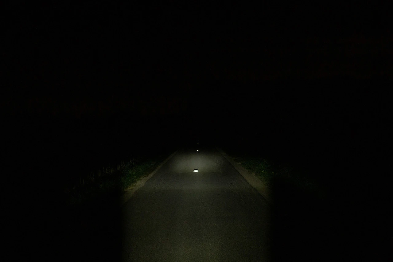 Die Licht-Revolution von busch+müller: Ein Spezialreflektor mit einem optimierten Kühlsystem nutzt eine Hochleistungs-LED als indirekte Lichtquelle. In der Mitte des Reflektors ist keine LED mehr zu sehen. Es entsteht ein Lichtfeld, das äußerst gleichmäßig ausgeleuchtet ist und doppelt so breit sein kann als bei konventioneller Technik. Lichtwirkungen können präziser positioniert werden – zum Beispiel lässt sich so das Nahfeld vor dem Vorderrad zusätzlich aufhellen.