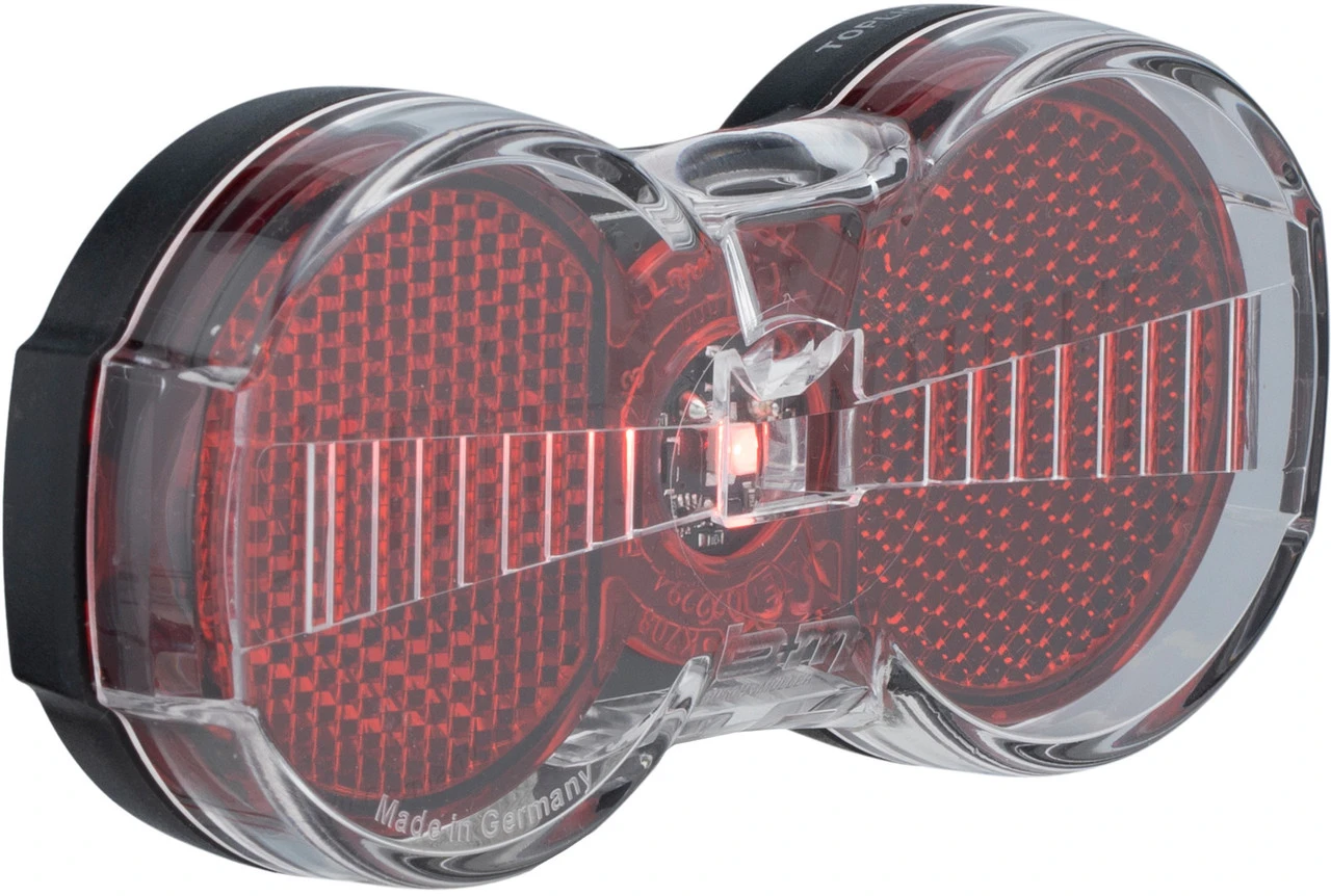 LineTec ist ein patentiertes Lichtsystem mit spezieller Linsenwirkung. Das punktuelle Licht von Hochleistungs-LEDs wird zu einem breiten Leuchtstreifen aufgefächert, der gleichmäßig leuchtet. Ein Rücklicht mit LineTec-Lichtband sendet ein ” räumliches” Licht aus. Deshalb können andere Verkehrsteilnehmer den Abstand viel besser und schneller einschätzen.