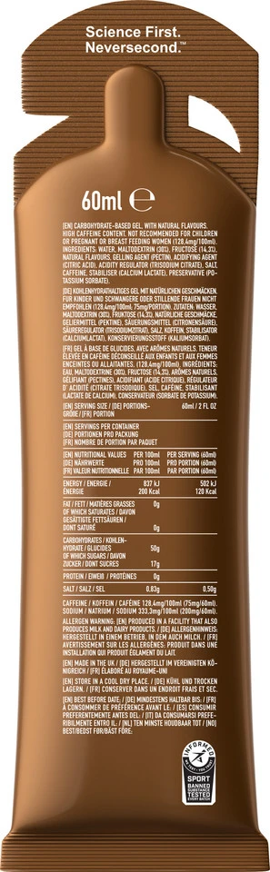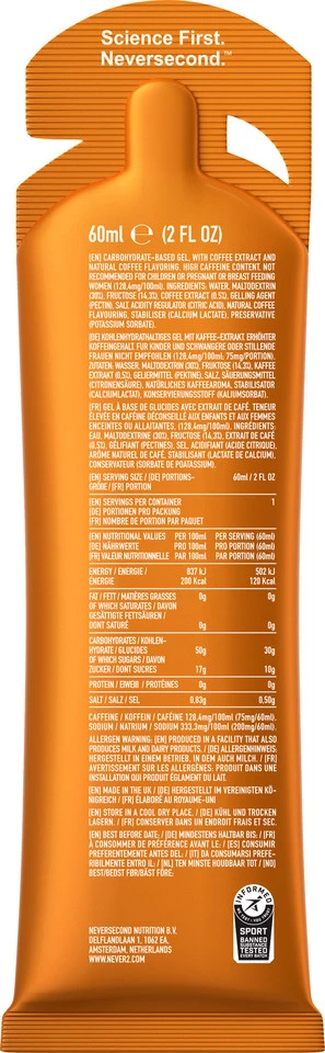 Natrium:333,3 mg / 200 mgKoffein:128,4 mg / 75 mgLieferumfang:1 x Gel NeverSecond C30+ Energy, Nettofüllmenge 60 ml