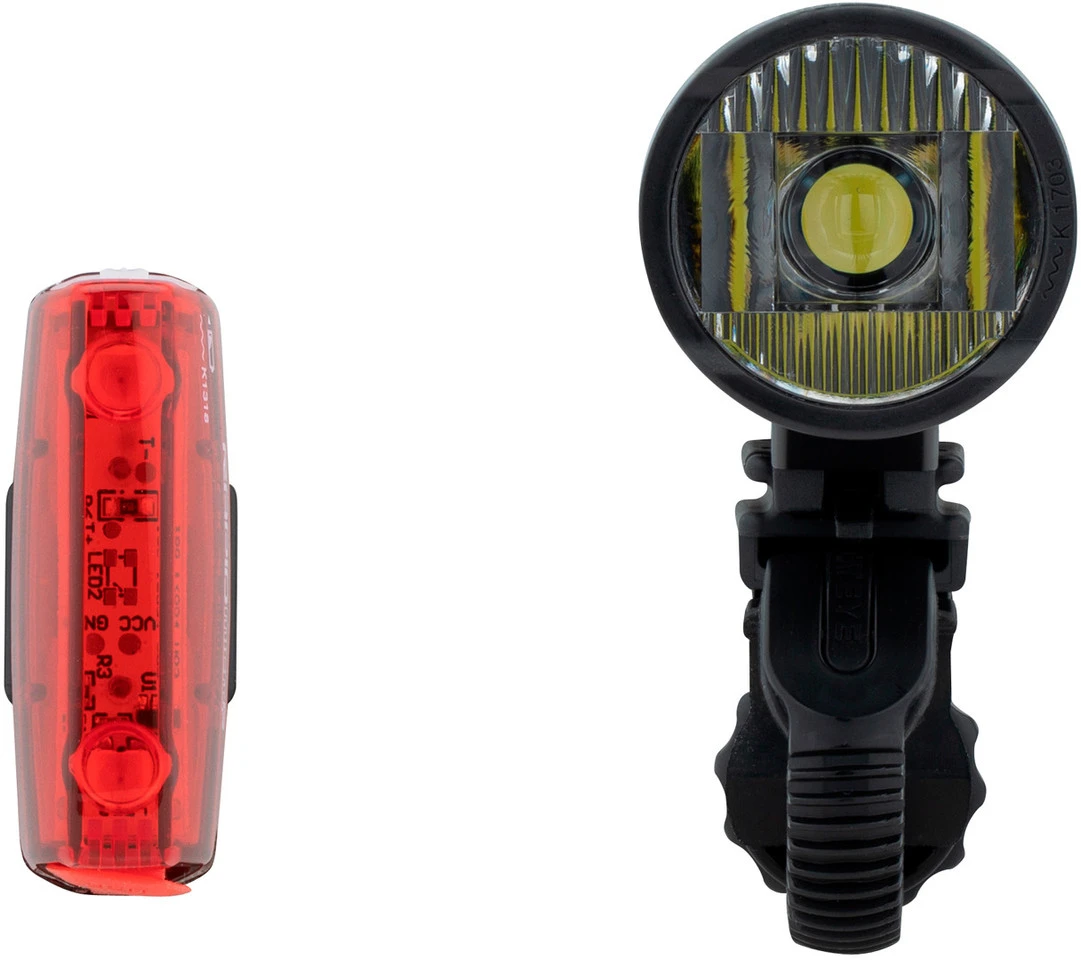 Lieferumfang:1 x LED-Frontlicht CATEYE GVolt 70.11 x LED-Rücklicht CATEYE TL-LD620G Rapid Micro G1 x Halterung CATEYE FlexTight H-34N1 x Halterungsadapter CATEYE GP1 x Sattelstützenhalterung CATEYE SP-14-R2 x Ladekabel USBDirekt mitbestellen:passende Out-Front-Halterung für GP-Adapter, z. B. CATEYE OF-200, K-Edge Combo, 3min19sec Lenkerhalterung