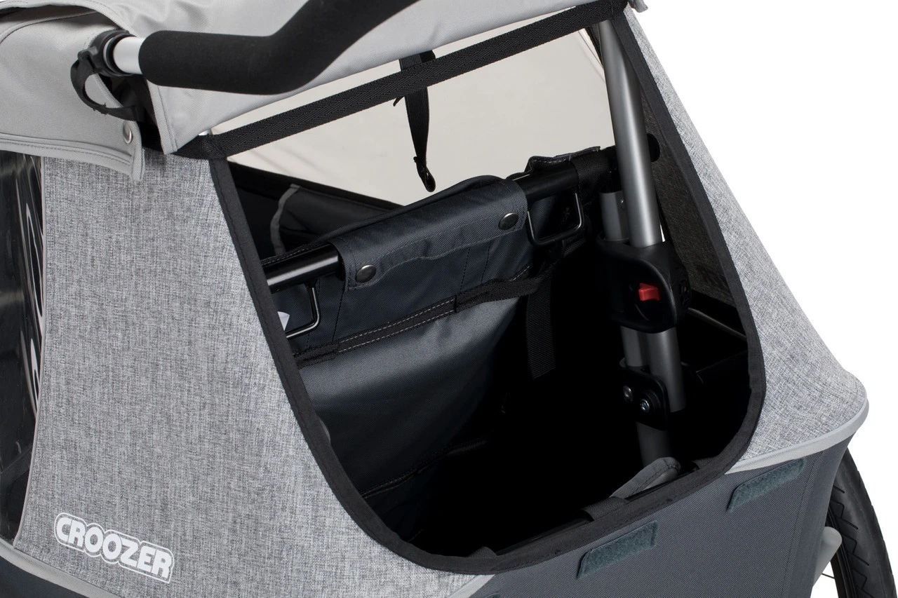 Das Click & Crooz System ermöglicht den werkzeugfreien Umbau des Croozer Anhängers in Fahrradanhänger, Buggy oder Jogger. Die Adapter sind mit einer Sicherung versehen, wodurch kein Festziehen von Schrauben o. ä. notwendig ist.