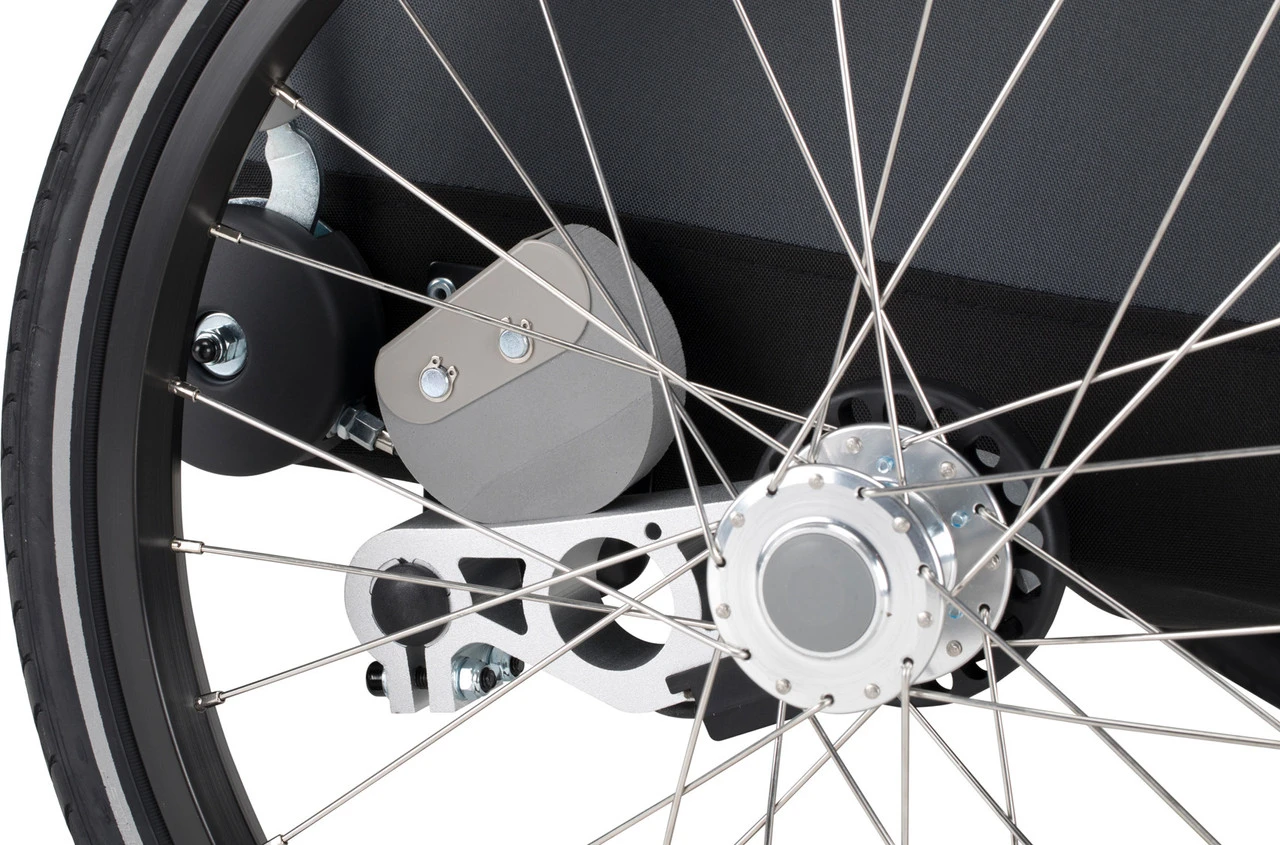 Spezifikationen:Ausführung:KinderanhängerLaufradgröße:20″Sitzplätze:1Technische Daten:Bremse:handbetätigte FeststellbremseFederung:JaMaße (HxBxT):90 x 76 x 110 cmMaße zusammengeklappt (HxBxT):71 x 28 x 106 cmVolumen Stauraum:43 LiterRahmenmaterial:AluminiumFreigaben:Zuladung max.:35 kgStützlast max.:8 kgFeatures:BatterierücklichtBuggyrad mit Vollgummibereifungschadstoffgeprüftes Materialergonomisch geformte Sitze aus atmungsaktivem climatex Materialautomatische AirPad Federungreflektierende Markierungen an Fahrgastzelle mit ÜberrollbügelUPF 80+ bei Fensterfolie und Regenscheibeeinfache Bedienung dank Click & Crooz Systemgepolstertes 5-Punkt-Gurtsystem (Easy Pull)höhenverstellbarer SchiebebügelTechnologien:climatex: