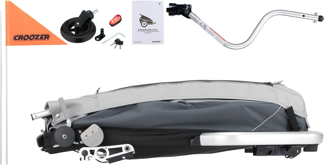 Lieferumfang:1 x Kinderanhänger Croozer Kid Keeke 12 x Laufrad 20″1 x Schiebebügel1 x Rücklicht1 x Sicherheitswimpel1 x Buggyrad 6″1 x Deichsel abschließbar3 x Schlüssel1 x Achskupplung1 x Stoßfänger vorne1 x Rändelmutter1 x Innensechskant 6 mm