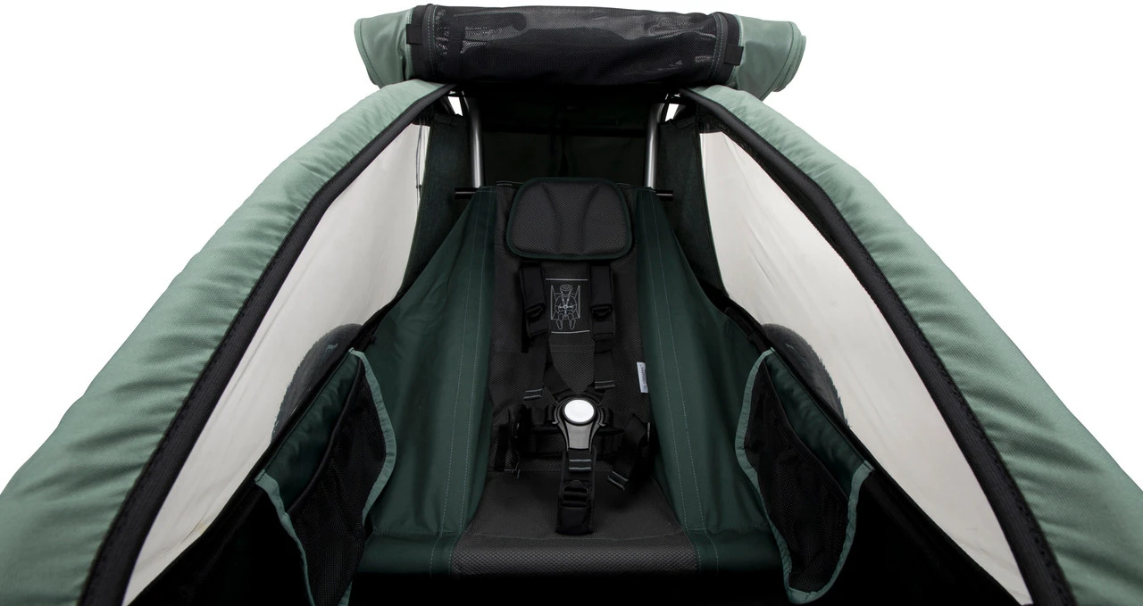 Spezifikationen:Ausführung:KinderanhängerLaufradgröße:20″Sitzplätze:1Technische Daten:Bremse:handbetätigte FeststellbremseFederung:JaMaße (HxBxT):90 x 76 x 110 cmMaße zusammengeklappt (HxBxT):71 x 28 x 106 cmVolumen Stauraum:43 LiterRahmenmaterial:AluminiumFreigaben:Zuladung max.:35 kgStützlast max.:8 kgFeatures:integrierte Beleuchtung im SchiebebügelBuggyrad mit Vollgummibereifungschadstoffgeprüftes Materialergonomisch geformte Sitze aus atmungsaktivem climatex Materialautomatische AirPad Federungreflektierende Markierungen an Fahrgastzelle mit ÜberrollbügelUPF 80+ bei Fensterfolie und Regenscheibeeinfache Bedienung dank Click & Crooz Systemgepolstertes 5-Punkt-Gurtsystem (Easy Pull)höhenverstellbarer SchiebebügelGepäckfach mit 43 LiternTechnologien:climatex: