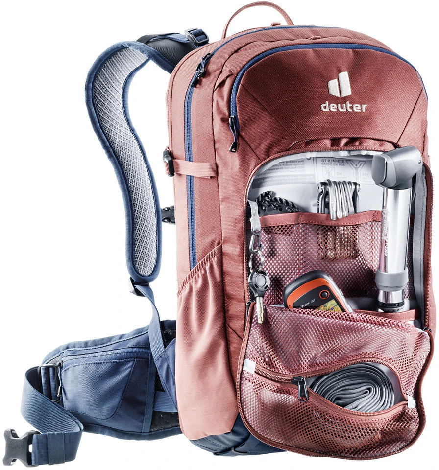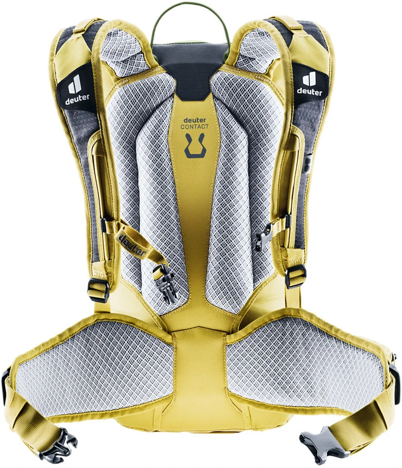 Spezifikationen:Einsatzbereich:Enduro, All MountainAusführung:ProtektorenrucksackVolumen:20 LiterTrinkblasenfach:3 LiterTechnische Daten:Material:600D PES Coat, 225D PESPrüfnorm:CE EN1621-2Features:Multishock SAS-Rückenprotektorverstaubare Fullface-Helmhalterung mit Befestigungsclipsrutschfestes Material an Rücken und Schultern2 elastische SeitentaschenLageverstellriemenanpassbarer BrustgurtRiemen zur Befestigung von Protektoren oder zum Komprimieren des RucksacksHalterung für Brille am TragegurtSignalpfeife am BrustgurtNetztasche für Schlauch, Werkzeug und Pumpenhalterung in der VortascheSOS-LabelAusführungen:Maße(HxBxL):50 cm x 28 cm x 20 cmTorsolänge:44-54 cmKörpergröße:170-195 cmHerstellernummern:321032153320 (redwood-marine), 321032128040 (khaki-tumerci), 321032144090 (shale-graphite)Lieferumfang:1 x Protektorenrucksack deuter Attack 201 x Multishock SAS-Rückenprotektor1 x Fullface-Helmhalterung deuter1 x Regenhülle
