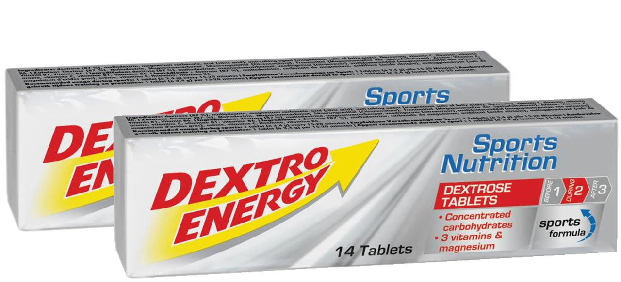 Lieferumfang:1 x Doppelpack Tablets Dextro Energy Dextrose, 2 x 14 Tablets, Nettofüllmenge 94 g