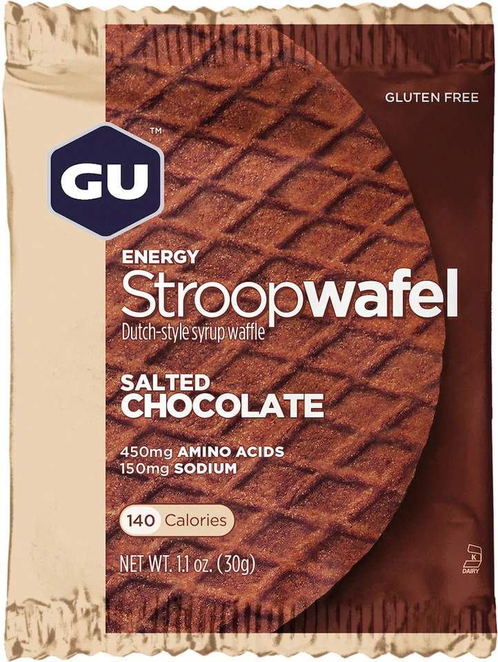 Eine Energy Stroopwafel von GU Energy Labs ist die richtige Wahl auf langen Touren, wenn Du keine Lust auf einen klassischen Riegel hast. Das flache Gebäck im Stil der beliebten niederländischen Waffelspezialität hat einen Kern aus Gel für den extra Energieschub und passt problemlos in jede Trikottasche.