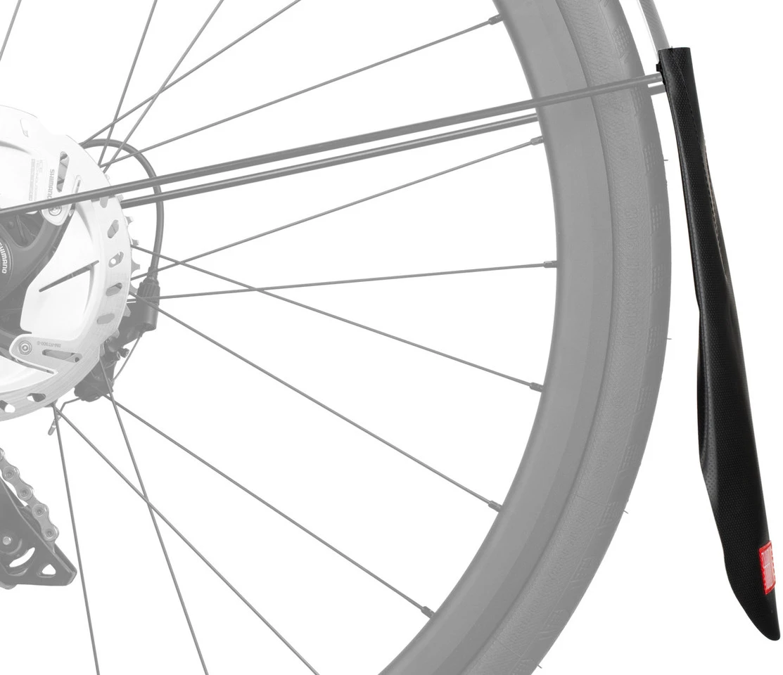 Der FAHRER Spritzschutz Latz XL dient als VerlĂ€ngerung des hinteren Schutzblechs und schĂŒtzt den FahrradanhĂ€nger so zusĂ€tzlich vor dem Spritzwasser.