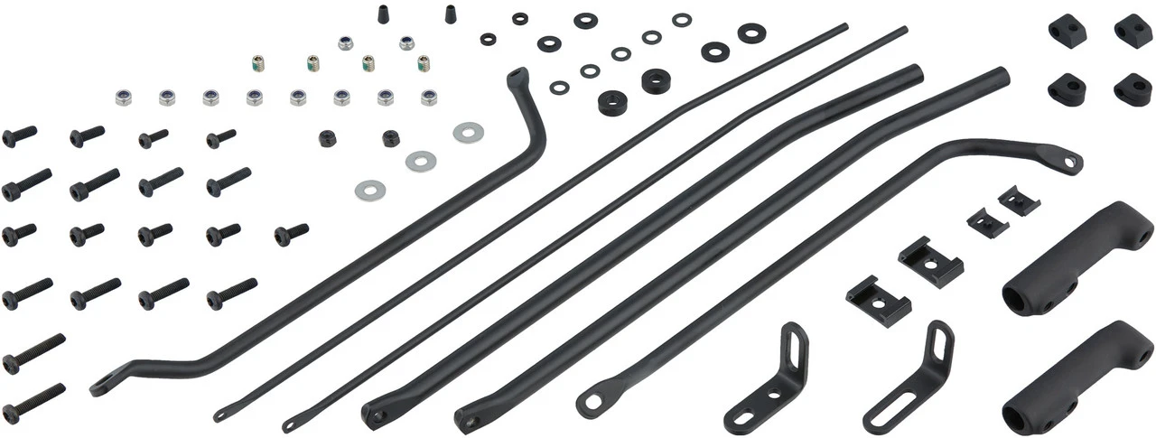 2 x Schutzblechstrebe für VR2 x Schutzblechstrebe für HR2 x Gepäckträgerstrebe für HR2 x Streben-Montage-Clip 4 mm2 x Streben-Montageklemme für 10 mm Streben2 x Adapter für Strebenmontage2 x Streben-Endkappe2 x Montagewinkel13 x Flachkopfschraube4 x Linsenkopfschraube2 x Zylinderkopfschraube4 x Gewindestift mit Schneidring4 x Schraubensicherung11 x Mutter2 x Kragenhülse6 x Distanzscheibe8 x Unterlegscheibe