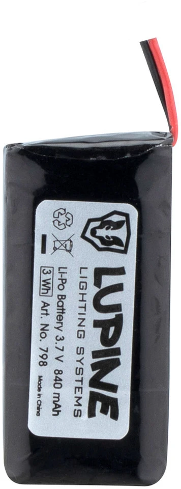 Spezifikationen:Typ:Lithium-Polymer AkkuKapazität:840 mAhSpannung:3,7 VKompatibilität:Lupine Rotlicht