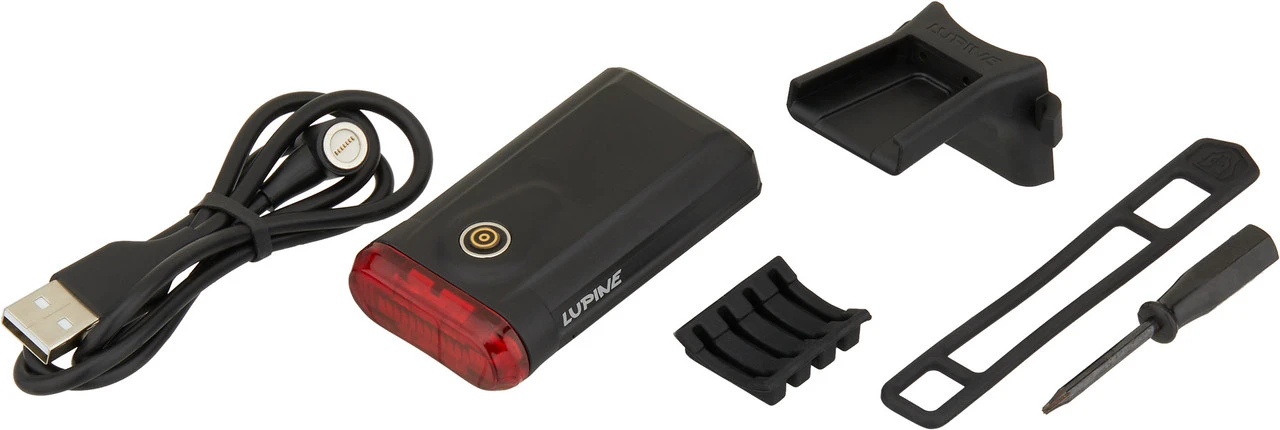 Lieferumfang:1 x Rücklicht Lupine C14 Mag1 x Magnethalterung Lupine Sattelstütze1 x USB-Ladekabel Lupine
