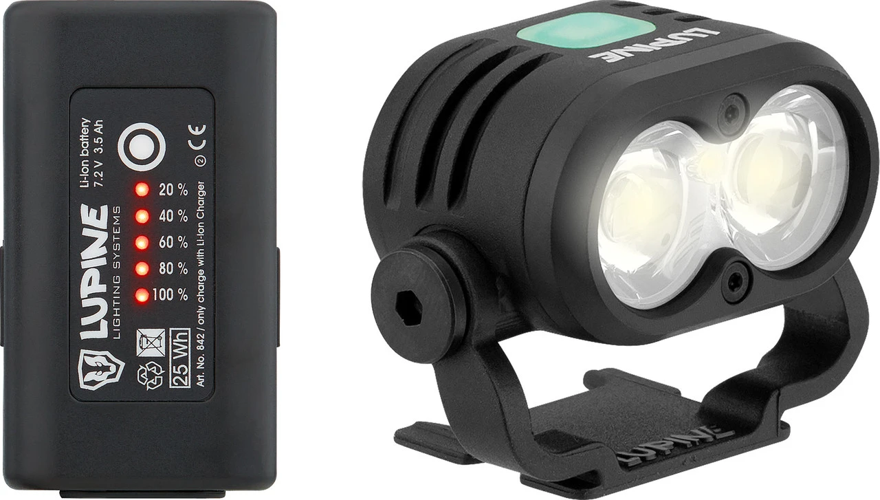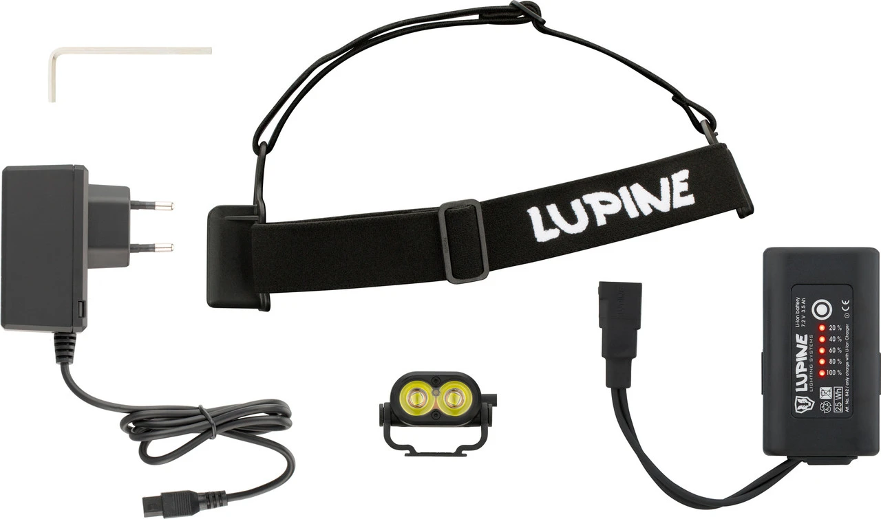 Lieferumfang:1 x Lampenkopf Lupine Piko1 x Li-Ion Akku Lupine SmartCore FastClick 3,5 Ah1 x Stirnband Lupine mit FastClick und FrontClick Halterung1 x Ladegerät Lupine Wiesel