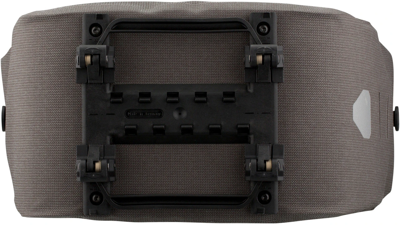 Mit dem Top-Lock-Adaptersystem von ORTLIEB fixierst Du Taschen und Fahrradkörbe unkompliziert auf der Ladefläche Deines Gepäckträgers. Das Befestigungssystem ist vollständig in der Tasche, bzw. im Korb integriert und mit Anti-Rutsch-Noppen versehen. Über seitlich angebrachte Entriegelungsgriffe löst Du Dein Gepäck schnell wieder von der Ladefläche. Die Adapterklemmen sind verstellbar und passen sich unkompliziert an verschiedene Gepäckträgermodelle – auch solche mit Federklappe – an.