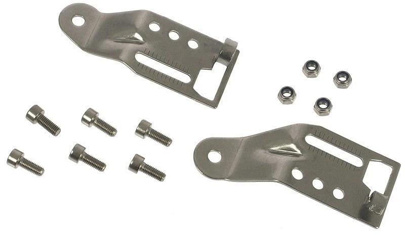 Verstellbare Strebenendplatten fĂŒr Pletscher GepĂ€cktrĂ€ger zur Montage an FahrrĂ€dern mit Discbremse.