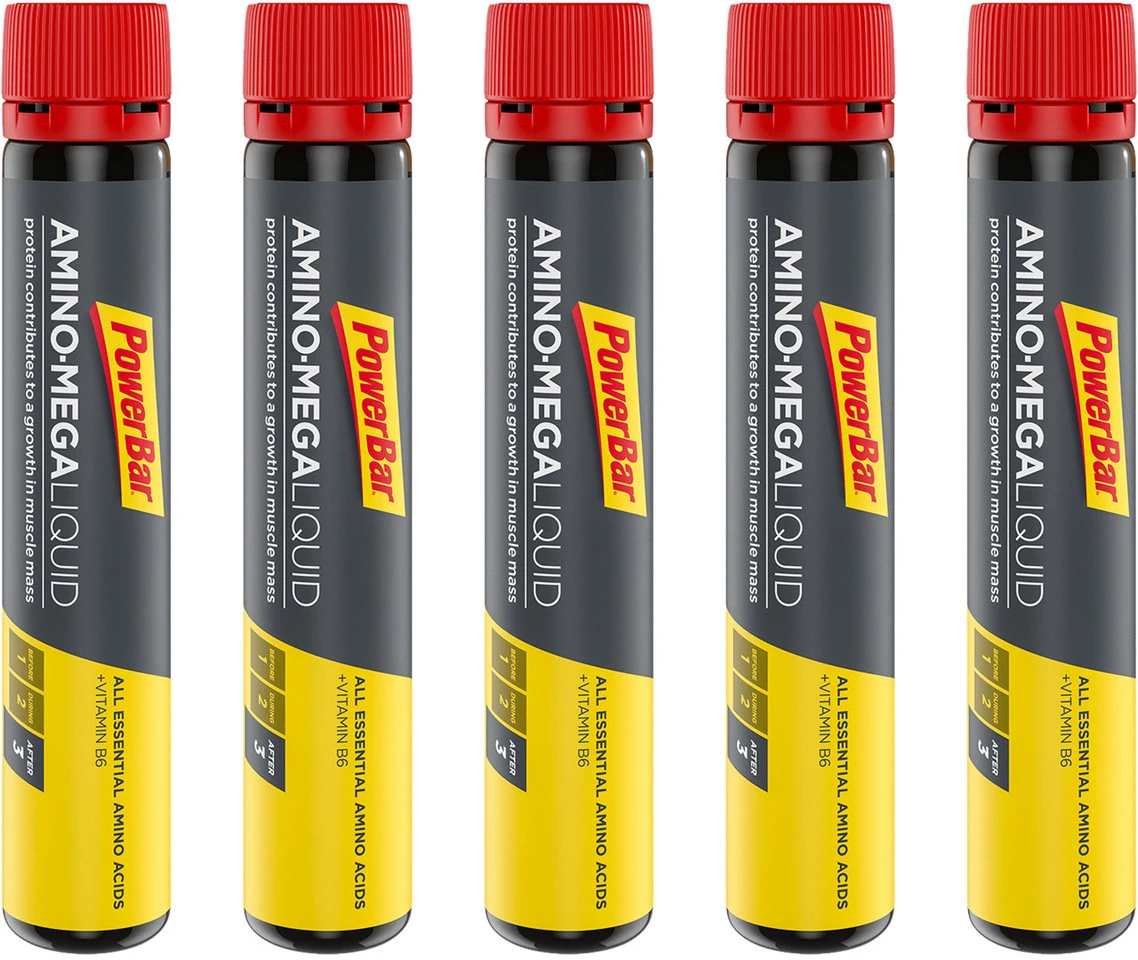 Versorge Deine Muskulatur mit dem PowerBar Amino Mega Liquid nach anstrengenden Trainingseinheiten mit den notwendigen Proteinen. Dank der enthaltenen Aminosäuren und des Whey-Protein-Hydrolysats kannst Du Deine Muskulatur erhalten oder sogar deren Aufbau begünstigen. Um Deinen Proteinstoffwechsel noch mehr zu unterstützen, ist außerdem Vitamin B6 enthalten. Die Ampullen sind klein und handlich, sodass sie in jeder Tasche untergebracht werden können und sofort nach dem Training greifbar sind.