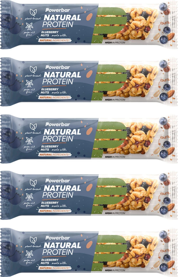 Sojacrisps (23,5 %) (isoliertes Sojaeiweiß*, Stärke*, Salz), Glukose-Fruktose-Sirup*, geröstete Erdnüsse* (10,9 %), Maltodextrin*, Sojabohnen* (7,2 %), Erbsenprotein* (6,3 %), Palmfett*, kandierte Cranberries* (5,4 %) (Zucker*, Cranberries*, Reismehl*, Sonnenblumenöl*), Fruktose, geröstete Mandeln* (4 %), kandierte Heidelbeeren* (3,4 %) (Heidelbeeren*, Zucker*, Reismehl*, Sonnenblumenöl*) Feuchthaltemittel (Glycerin*), natürliche Aromen*, Säuerungsmittel (Citronensäure*), Salz, Vanilleextrakt*, Emulgator (Sojalecithine*). * natürliche Zutat.