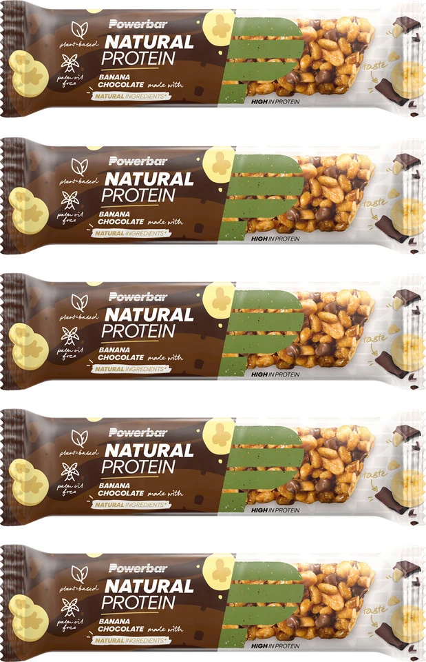 Fruchtsirup* (Apfel*, Weintraube*, Carob*), Sojacrisps (20 %) (isoliertes Sojaeiweiß*, Stäke*, Salz), Sojabohnen* (14 %), geröstete Erdnüsse* (13 %), Maltodextrin*, Erbsenprotein* (6 %), Bananenstücke* (6 %) (Bananen, Reismehl*), Palmfett*, dunkle Schokoladenstücke mit Süßungsmittel (5 %) (Süßungsmittel (Malit), Kakaomasse, Emulgator (Sojalecithine), fettarmes Kakaopulver, natürliches Vanillearoma), Feuchthaltemittel (Glycerin), natürliches Aroma*, Salz, Vanilleextrakt*, Emulgator (Sojalecithine). *natürliche Zutat.