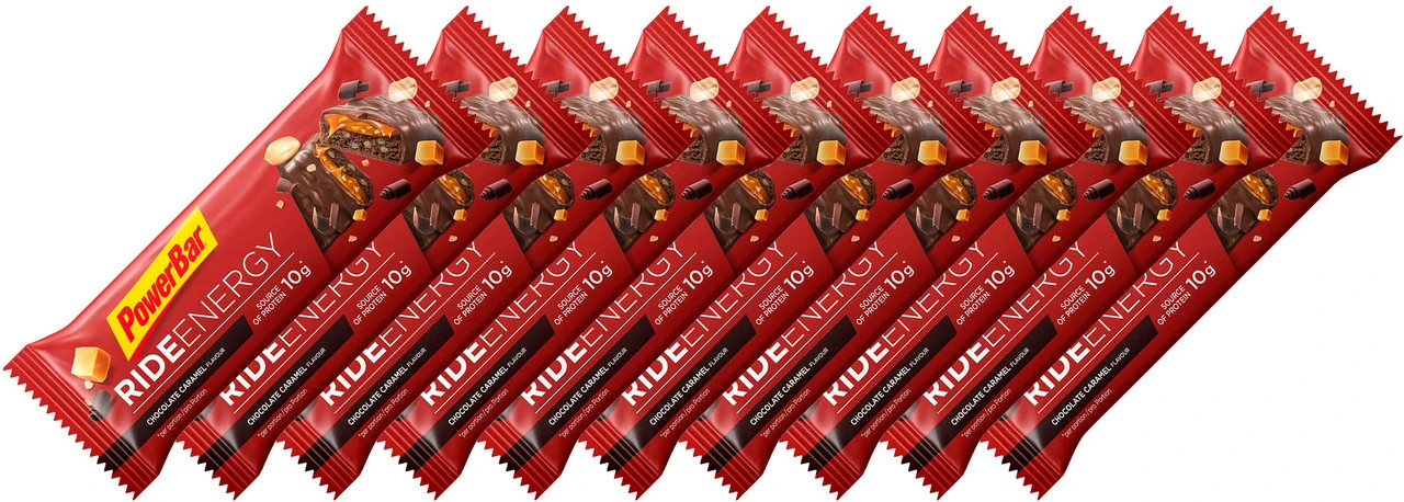 4 x Riegel PowerBar Ride Energy, Nettofüllmenge 220 g, peanut-caramel3 x Riegel PowerBar Ride Energy, Nettofüllmenge 165 g, chocolate-caramel3 x Riegel PowerBar Ride Energy, Nettofüllmenge 165 g, coco-hazelnut caramel