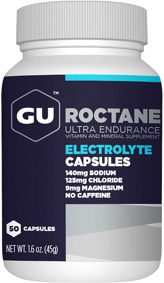 Die geschmacksneutralen Elektrolyt Roctane Kapseln von GU Energy Labs tragen zu einem ausgeglichenen Elektrolythaushalt bei sportlichen Ausdaueraktivitäten bei. Egal ob Sommer oder Winter – mit der Aufnahme der Mineralien Natrium, Magnesium und Chlorid erhältst Du Deine Leistungsfähigkeit, selbst wenn Du stark schwitzt. Das enthaltene Ingwerwurzelpulver schont den Magen und verhindert das Entstehen von Übelkeit.