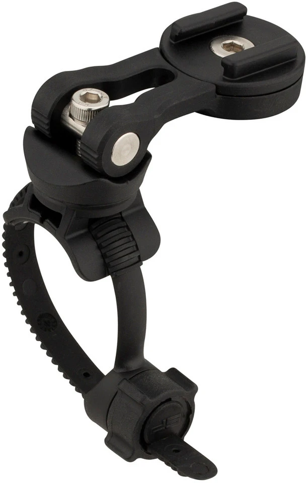 zwei Montagemöglichkeiten mit oder ohne ArmArm dient der Winkelverstellungauch bei Montage ohne Arm Hoch- oder Querformat möglichsichere Verriegelung durch 90°-Drehungwerkzeuglose Montage an Lenker oder Vorbau