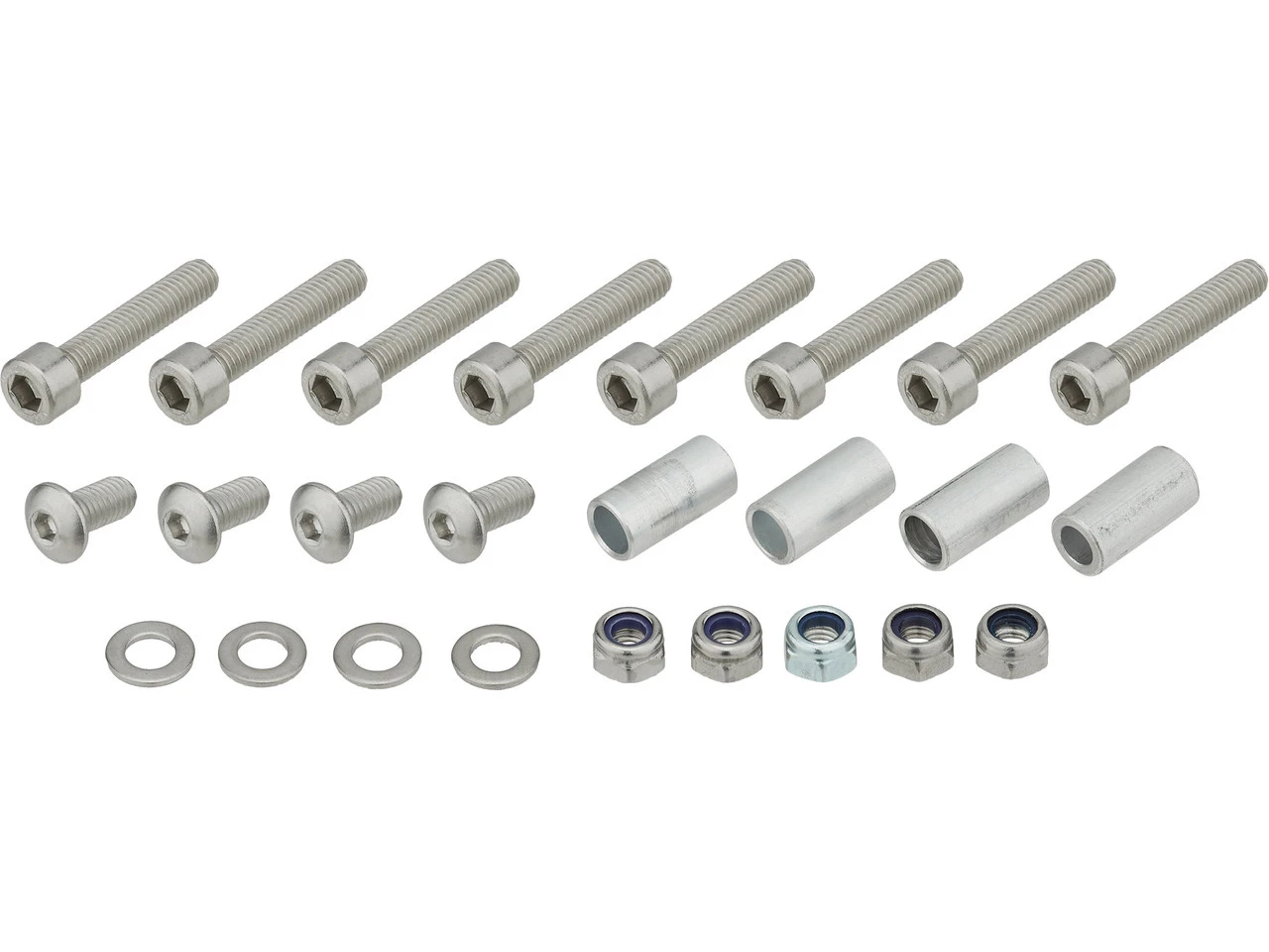 Lieferumfang:1 x Ständer tout terrain für Singletrailer Kinderanhänger8 x Schraube lang4 x Schraube kurz4 x Distanzhülse4 x Unterlegscheibe5 x Sicherungsmutter