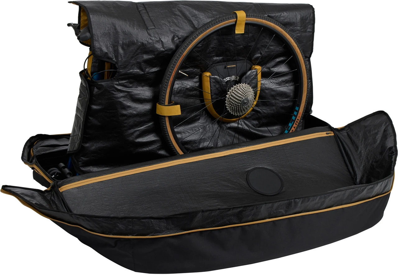 Spezifikationen:Einsatzbereich:Road, Gravel, CyclocrossAusführung:FahrradkofferMaße (H x B x T):85 cm x 124 cm x 33 cmTechnische Daten:Material:Polypropylen, HDPE (High-Density Polyethylen)Freigaben:Belastbarkeit max.:19,1 kg (ohne Koffer und Zubehör)Kompatibilität:Rennräder, Gravelbikes, Cyclocross-RäderAchsmaße Gabel: Schnellspanner, 12 x 100 mm, 15 x 100 mm, 20 x 110 mm, 15 x 110 mm (Boost)maximaler Radstand Fahrrad: 110 cmFeatures:rollbarer Transportkoffer für Road- und Cyclocrossbikes mit allem benötigten TransportzubehörMontageständer mit Adapter für verschiedene Gabel-Einbaumaße und Rahmendimensionensichere Befestigung am Ständer dank Kunststoff-Zurrgurtkomplett zerlegbare Tripod-HalterungEinklickmechanismus zur Sicherung des Montageständers im Kofferintegrierte Laufrad-Transportfächer mit Bremsscheibentaschen und KlettbefestigungenInnentaschen für KleinteileAufbewahrung mit Piktogramm-Kennzeichnung für Komponenten und KofferzubehörKofferseiten können komplett geöffnet und heruntergeklappt werdenkompakt zusammenfaltbar für LagerungHerstellernummer:3204825