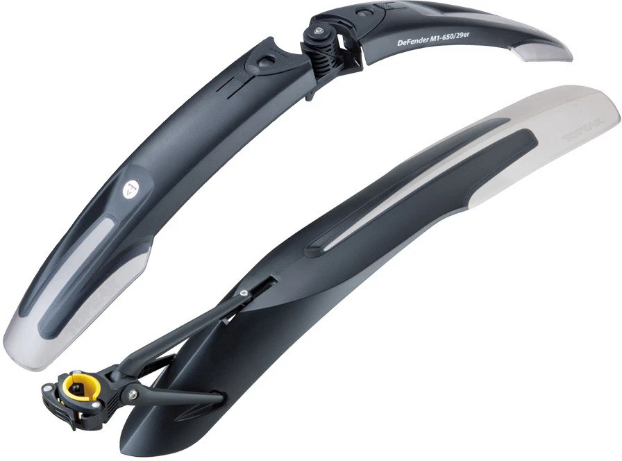 Technische Daten:Material:Nylon-SpritzgussAusführungen:27,5″ , 29″Befestigung VR (= M1):Gabelbefestigung, passend für Gabelschäfte Ø 19,6 – 26 mm und Ø 27,7 – 35 mmBefestigung HR (= XC11):per Schnellspanner an der Sattelstütze (25,4 – 34,9 mm)Sonstiges:Hinterrad-Schutzblech winkelverstellbarHerstellernummern:27,5″:TC964129″:TC9638Lieferumfang:1 x Schutzblech Topeak DeFender™ M11 x Schutzblech Topeak DeFender™ XC11