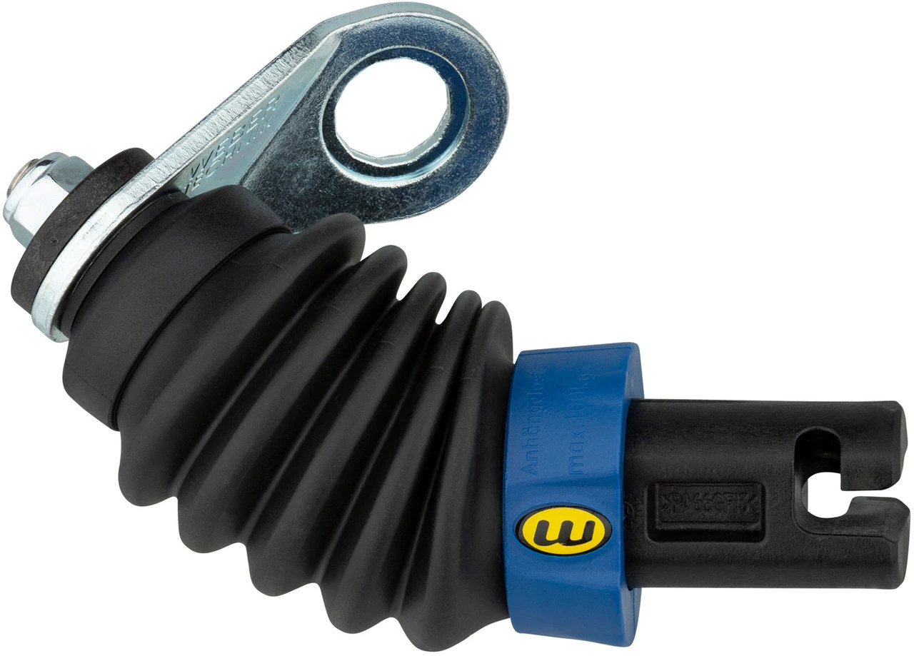 Die Kupplung ES von Weber ist die Lastenversion der Kupplung E. Sie ist nur für Lastenanhänger bis zu einer Zuglast von 100 kg geeignet (Achtung: bei Anbindung an eine Schnellspannachse sind nur 80 kg Gesamtgewicht erlaubt).