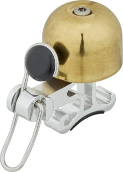 DD-M26 von XLC ist eine kleine Fahrradklingel aus schimmerndem Messing im Retro-Look. Sie wird ĂŒber eine Schlaufe an Lenkern von 19,2 bis 31,8 mm Durchmesser befestigt und eignet sich somit fĂŒr sehr viele Lenkertypen. AuĂerdem gefĂ€llt die Glocke mit ihrem angenehmen Klingelton.